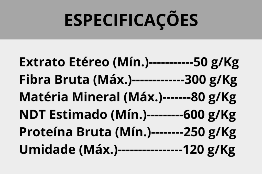 Considerado um produto muito palatável e com alto valor protéico e energético, é muito utilizado em diversos sistemas de produção de gado de corte e leite.